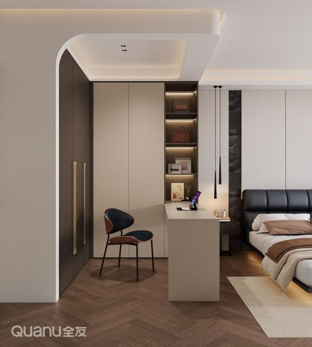 ②衣柜延展台面充当书桌,有效分隔衣柜与休息区,布局更合理有序